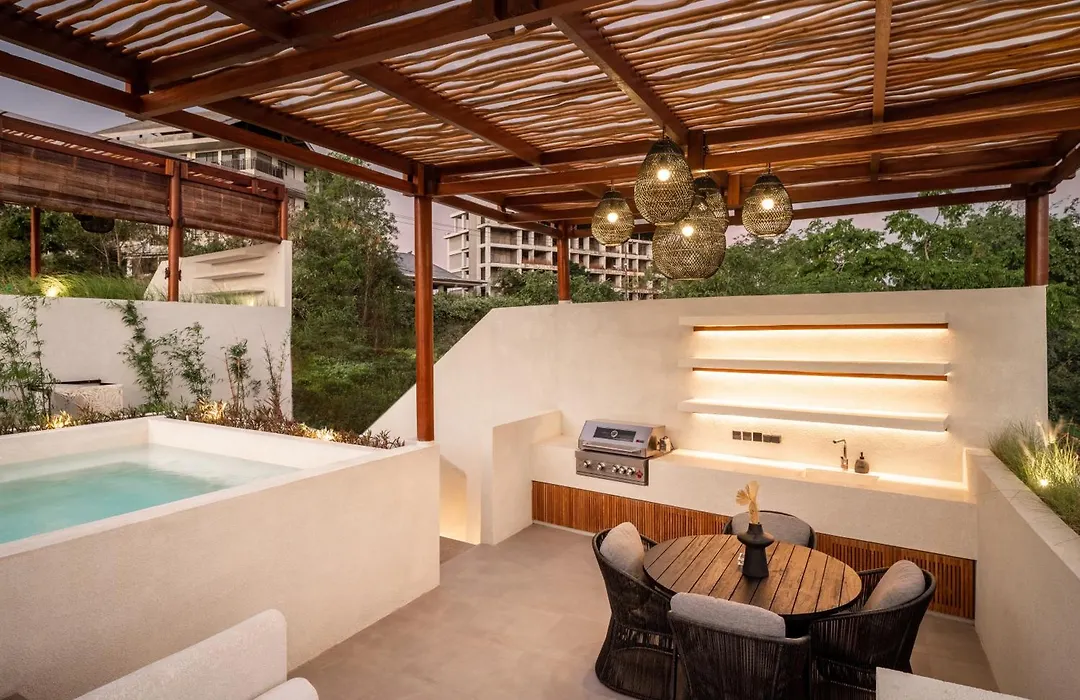 In der Villa in Uluwatu stehen Gästen eine voll ausgestattete Küche sowie ein Essbereich im Freien zur Verfügung. Es gibt auch eine Kaffee-/Teemaschine, einen Kühlschrank und einen Herd in der Küche. Etwa 15 Gehminuten von hier entfernt finden Sie das Restaurant The Elementum Restaurant & Bar, das leckere Gerichte serviert.